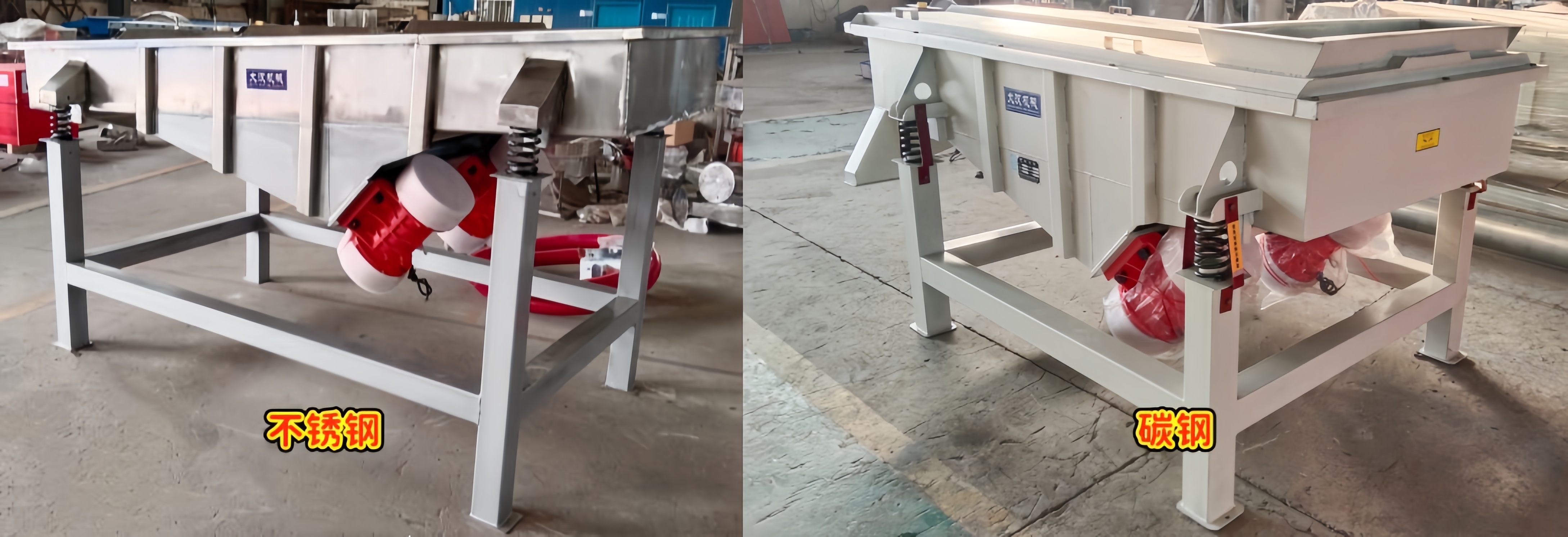 1030直线振动筛我们提供的材质有碳钢和不锈钢两种材质,客户可以结合自己的筛分需求进行选择,能够满足不同类型的物料筛分需求。